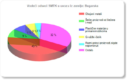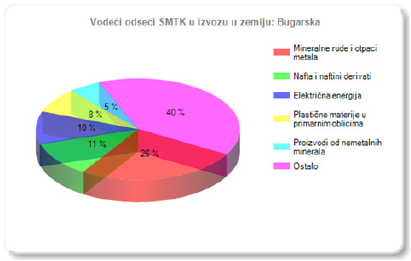 Analizom navedenih pokazatelja u izvozu prema Republici Bugarskoj, u poslednjih 5 godina, 6 sektora koji se izdvajaju po obimu vrednosti izvoza i tržišnom zastupljenošću (klasifikovani prema SMTK):