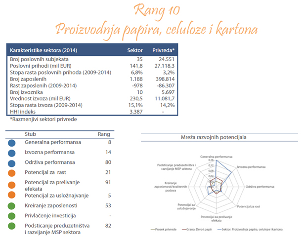 Sektor proizvodnje papira, celuloze i kartona obuhvata proizvodnju vlakana celuloze, papira i kartona, mehaničku drvnu celulozu, hemijsku drvnu celulozu, kraft papir i druge vrste papira i kartona.