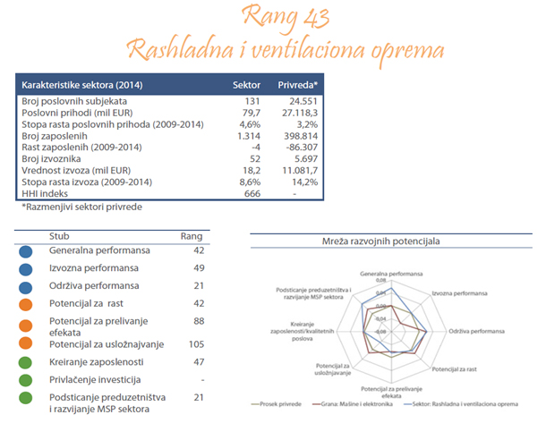 Sektor proizvodnje rashladne i ventilacione opreme obuhvata frižidere, zamrzivače i ostale uređaje za hlađenje ili zamrzavanje (električna ili drugo), delove frižidera i zamrzivača, uređaje za klimatizaciju, ventilatore i aspiratore, itd.
