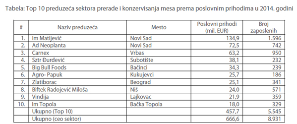 Sektor prerade i konzervisanja mesa obuhvata meso goveda, meso ovaca ili koza, meso svinja, meso konja, magaraca, mula ili mazgi, sveže, rashlađeno ili smrznuto, meso i klanični proizvodi za jelo, sveže, rashlađeno ili smrznuto, iznutrice, riblje meso (mleveno ili ne), itd.