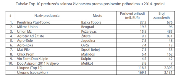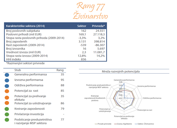 Sektor živinarstva obuhvata delatnosti uzgoja živine: kokoške, patke, guske, ćurke itd. Preduzeća u ovom sektoru proizvode ptičja jaja, u ljusci, sveža, konzervisana ili kuvana.
