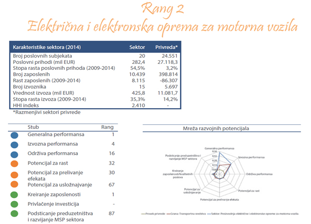Proizvodnja električne i elektronske opreme za motorna vozila obuhvata proizvodnju velikog broja električnih i elektronskih proizvoda za upotrebu u motornim vozilima. U tabeli ispod prikazana su najveća preduzeća u Srbiji, koja se bave proizvodnjom električne i elektronske opreme za motorna vozila. Ova preduzeća proizvode električnu opremu za paljenje i pokretanje motora sa unutrašnjim sagorevanjem (magneta za paljenje, dinamo-magneta, kalemova za paljenje, svećica za paljenje i zagrevanje...), brisače i uređaje za odmrzavanje i odmagljivanje, električne naprave za otvaranje prozora i vrata na automobilima, setove (garnitura) provodnika, regulatore voltaže, itd.